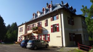 … wo die Milch wohl direkt am Berg zu Käse gemacht wird – beim Essen habe ich beobachtet, wie der Chef einen Laib davon verkauft hat. Ich schiebe also weiter den Trail hinauf …
