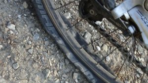 Was soll’s, Flickzeug ist ja an Bord und damit will ich jetzt den alten Schlauch abdichten, der sich noch in meiner Satteltasche befindet: